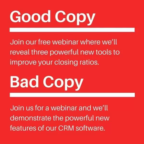 Astfel, textele de site sau descrierile de produs nu devin altceva decât elogii aduse propriei persoane – „compania noastră este cea mai bună”, „oferim cel mai tare lucru”, fără a i se crea mai întâi un interes consumatorului final.