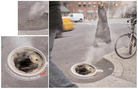 You’d think it’s not a good combination and, of course, you’d be right. Though that doesn’t apply to advertising, as this unconventional example proves. This kind of unique campaign not only advertises the city that never sleeps, as the copywriting suggests, but also manages to use an element of the environment not many advertisers would think to use to promote a product, in this case a delicious coffee. This proves that there are no limits to creativity and this clever juxtaposition of elements manages to make you want to go for that cup of joe rightaway.