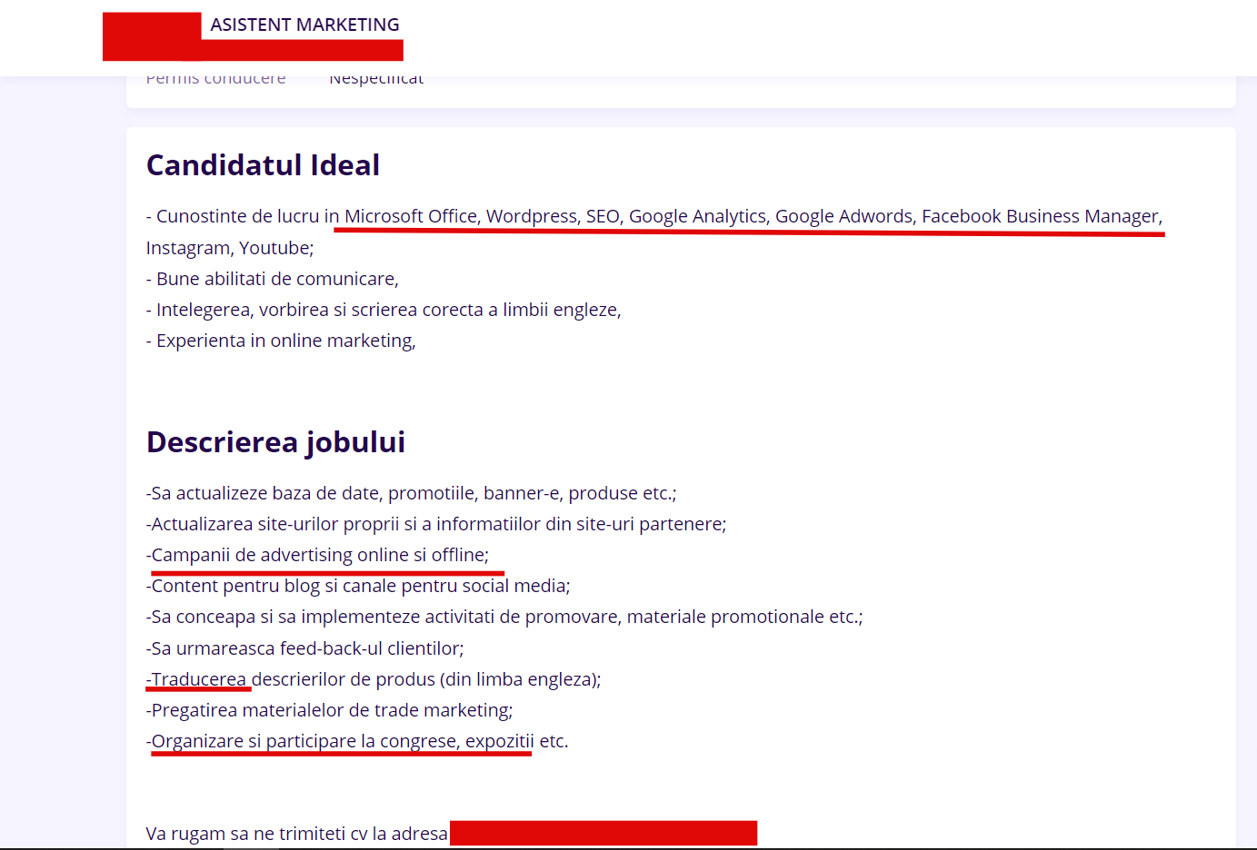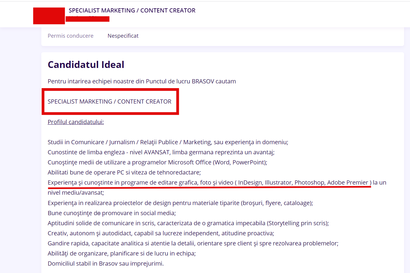 Chiar și pentru un astfel de job 2 în 1 cu balsam, nu văd de ce trebuie ca un marketer să știe Illustrator și Adobe. Domnii mei, căutați pe Google, vă rog din suflet, care sunt atribuțiile unui marketer ȘI ale unui creator de conținut.