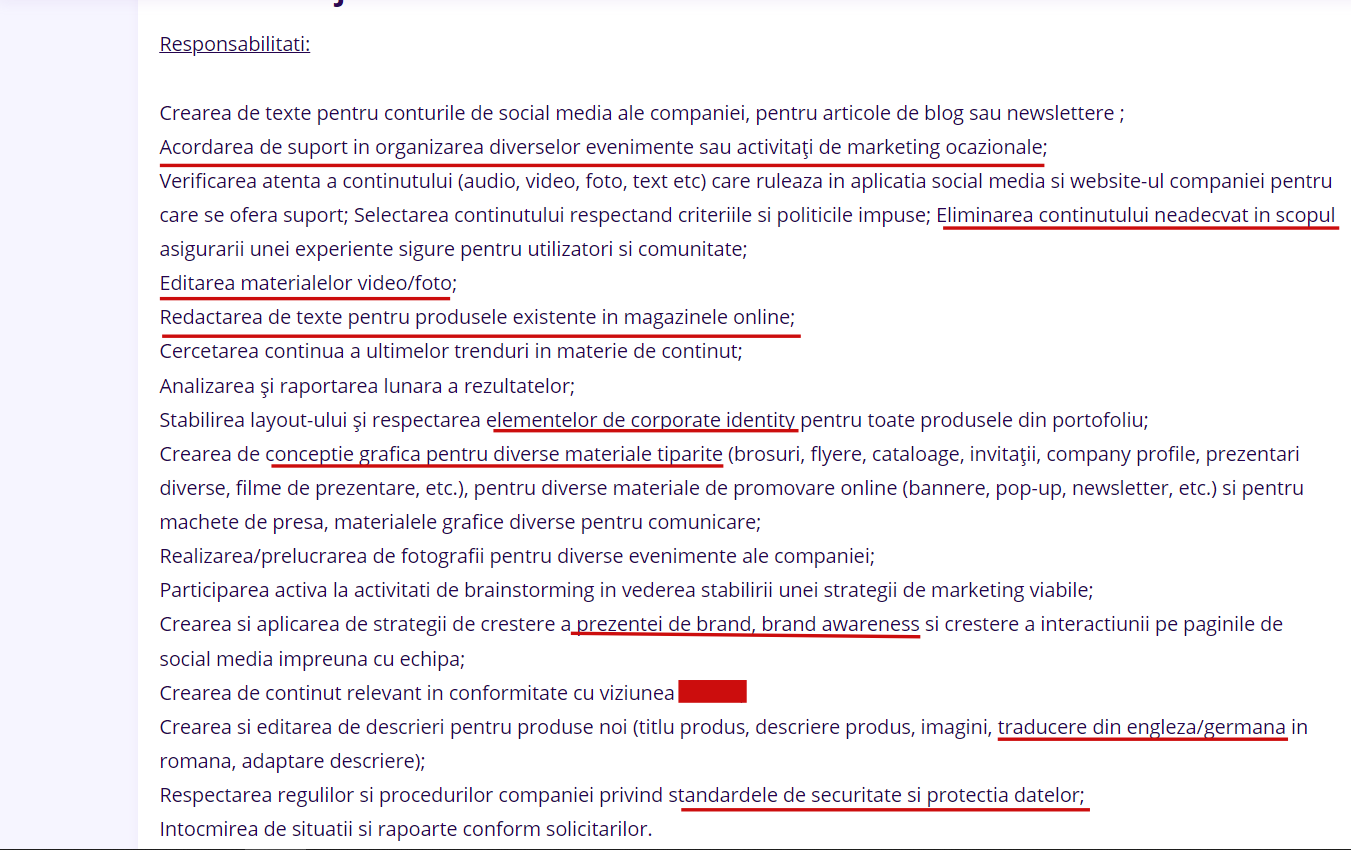 Acești răsăriți caută, nu exagerez, un department întreg de oameni cu specializări cât se poate de diferite – moderator de conținut, PR și event planning, brand manager, copywriter, content writer, traducător, specialist GDPR…iar lista poate continua.