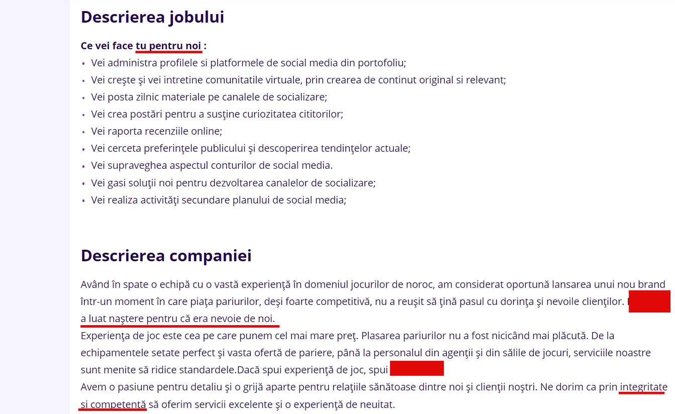 - “integritate și competență” – tocmai de asta angajăm juniori și cerem experiență de mid-level, pentru că avem integritate!