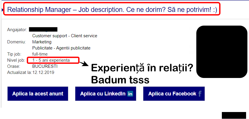 - Șapte ani de acasă e un minim necesar pentru amabilitatea necesară în domeniu – nuuu, zău...păi și voi unde ați arătat că îi aveți în tot anunțul ăsta? Practice what you preach, HR, practice what you preach.