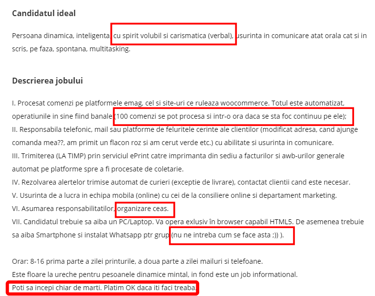 Am scris mai pe larg despre acest fenomen în recrutare și aici, pentru cei interesați. În fond, în multe dintre cazuri, apelativele de mai sus doar descriu frumos adevărata cerință – angajăm fomiști și/sau sclavi fără pretenții.