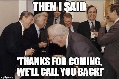- vă scoatem la un suc în oraș ca să discutăm viitoarele proiecte ale companiei (notă – nu ținem minte numele a mai mult de două persoane, de aceea așteptați-vă să folosim des sintagme ca echipa noastră sau colectivul nostru)