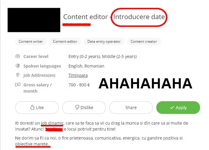 Alte anunțuri de angajare penibile din content writing&marketing online