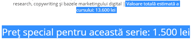 Este ok însă să vorbim de cursuri de copywriting plătite atunci când trainerul care le susține aduce plus valoare - exemple practice din experiența sa, studii de caz pe care nu le poți găsi altundeva, invitați speciali, speakeri din străinătate, specialiști acreditați de la universități de prestigiu etc. Atunci da – un astfel de curs de copywriting merită plătit cu vârf și îndesat pentru ceea ce vi se oferă și merită toată atenția voastră.
