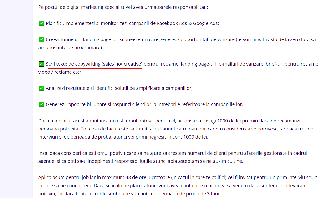 Doar nu credeați că am rămas fără material de analizat, nu-i așa? Din contră, ceea ce veți descoperi în rândurile următoare mi-a luat fix 5 minute să găsesc, pe cea mai cunoscută platformă de recrutare din România, ejobs.