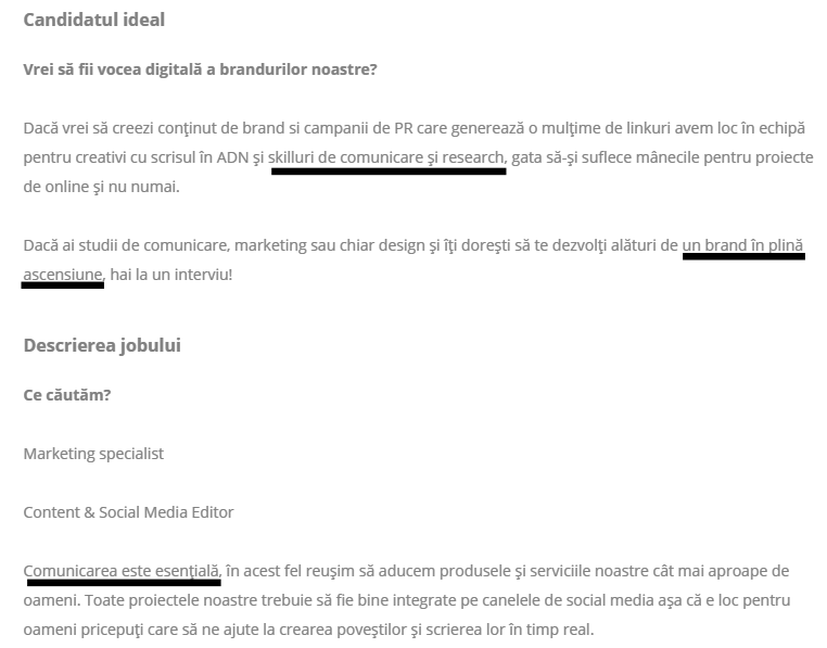 Numai mie îmi dă impresia acest anunț de recrutare că fu compus în Google Translate, între 4 beri și 2 shoturi? Candidatul “de succes” (pentru că e într-adevăr un succes personal să dai Apply la așa ceva), acest ACEST creativ al zilelor noastre trebuie să știe multe, stați așa că încă n-ați aflat nimic.