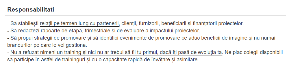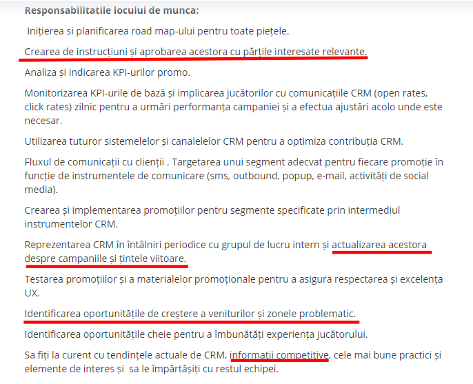 - Super apreciate sunt capacitatea de a lucra sub presiune, cu deadline-uri = căutăm un sclav care să sclavagească bine și îl premiem cu și mai mult sclavagism dacă reușește
