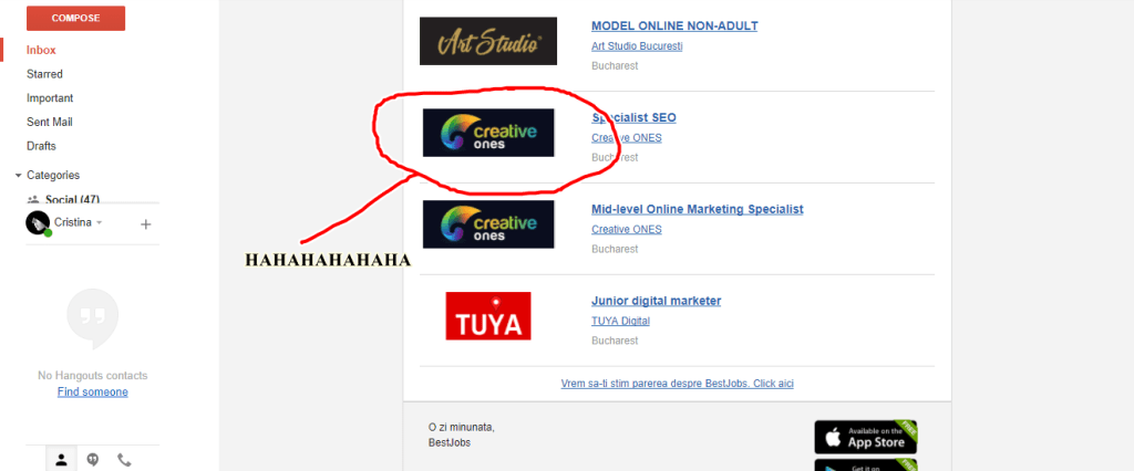 Cum știm asta? Pentru că evident o agenție care se intitulează “The Creative Ones” este deosebit de creativă. Ironia este delicioasă, spor la găsit creative candidates for a creative agency to do creative work, iertați-mi romgleza.