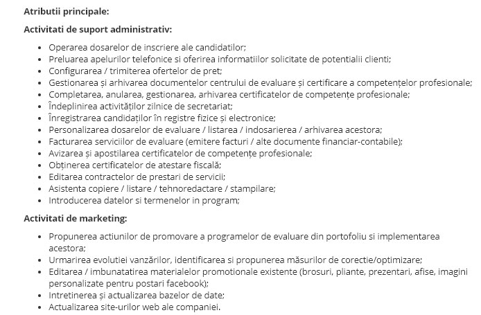 Dar stați! Surprizele continuă. Secretara cu atribuții de marketing trebuie să știe…meserie. Iată cam câtă: