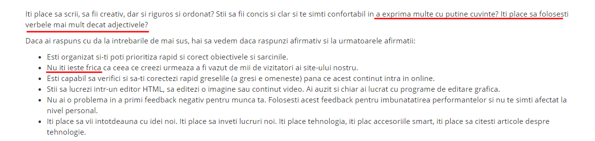 Nu numai că nu atrageți pe nimeni din content marketing, dar e problematic să vă lăudați că vreți un candidat sociopat. Nici ca glumă, personal, nu pot gusta așa ceva – totuși e un termen din psihologia clinică. Prea ne jucăm așa cu termeni serioși aruncați la plesneală – sunt trist, am depresie, sunt agitat, am anxietate. Așa și voi – inventez povești, sunt sociopat. Odată că, și dacă vreți să fiți simpatici, ați greșit înțelesul termenului. Sociopații se ocupă cu altele.