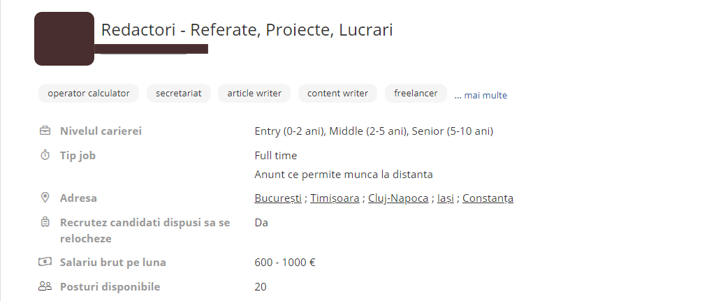 De muncă nu am găsit. Caterincă și plâns, în schimb, am din belșug pentru toți frații mei. Așa că luați un loc și hai să vedem ultimele perle din recrutarea post-criză în cel mai frumos, generos și lucrativ domeniu după videochat - content marketing.