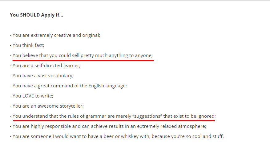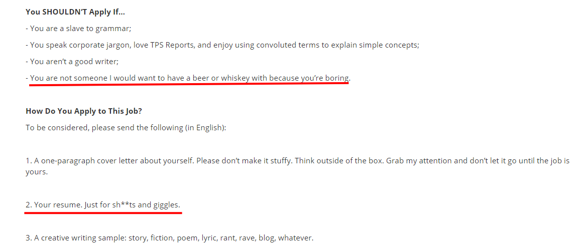 Nu uitați să nu fiți plictisitori, altfel nu vă angajăm.